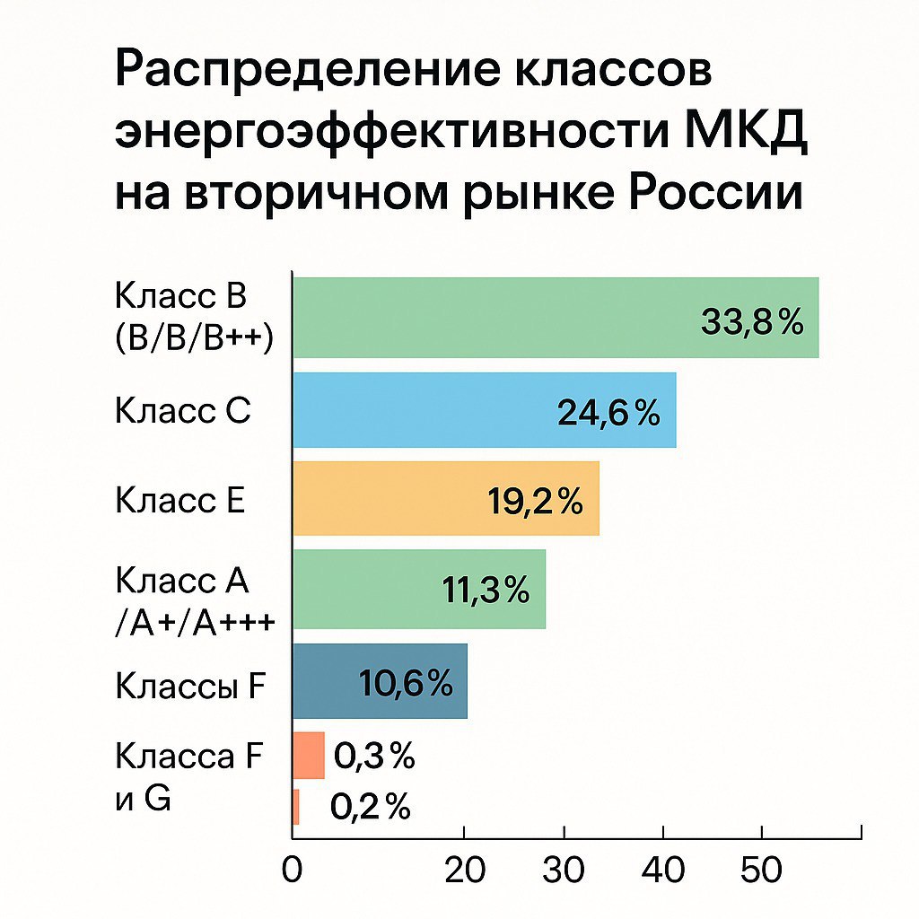 🏆 Класс B лидирует — 33,8% квартир на вторичке относятся к B/B+/B++.